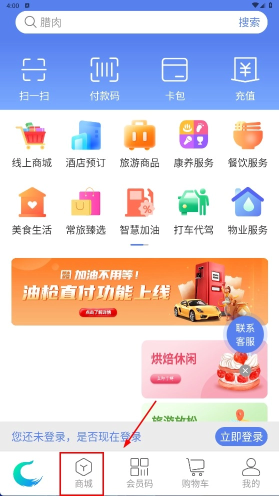 1、点击底部【商城】,进入线上商城板块。