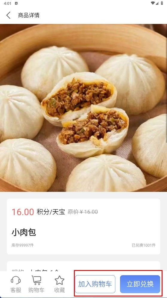 3、在商品列表里,点击想要查看的商品(比如小肉包),就能进入该商品的详情页面。