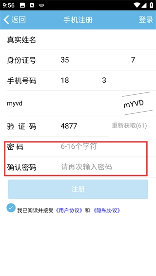 3、请设置一个6到16字符长度的密码,接着在“确认密码”输入框中再次输入该密码以完成确认。