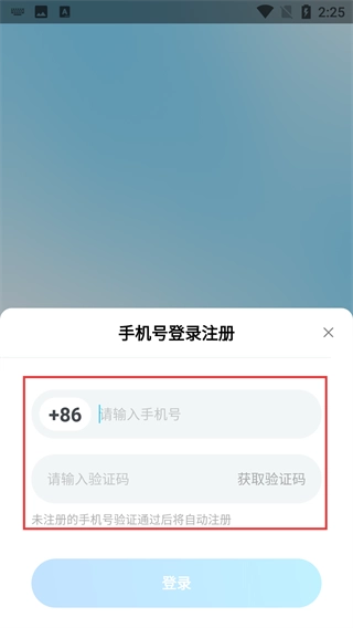 3、进入【账号登录注册】页面,先在【请输入账号】栏填写账号,点击【获取验证码】后填入,即可完成登录操作。
