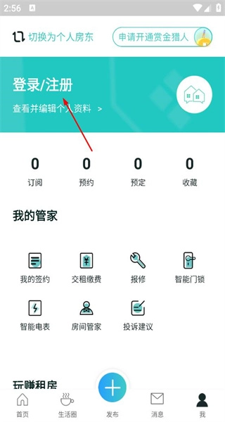 2、先在租房首页查看租房分类和房源信息,接着找到底部导航栏的“我”,点击它就能进入个人中心页面。