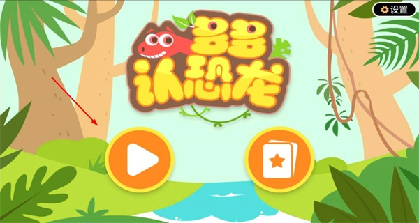 1、打开软件后,在主页面找到播放按钮和卡片按钮,点击播放按钮,即可进入恐龙认知的互动环节。