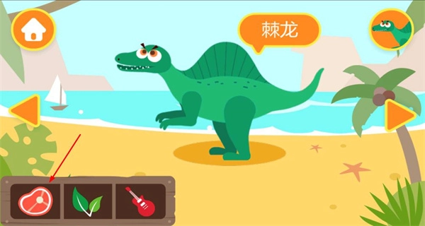 2、进入后会看到霸王龙的形象,其下方设有不同的物品选项,选择相应物品,就能了解霸王龙的食性等相关内容。