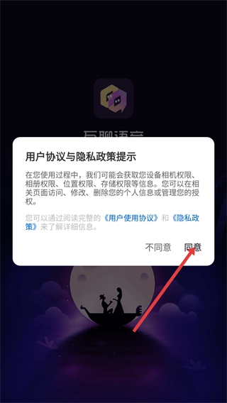 1、当出现用户协议与隐私政策提示弹窗时,仔细阅读其中的权限说明及协议内容后,点击【同意】按钮,即可继续推进应用的使用流程。