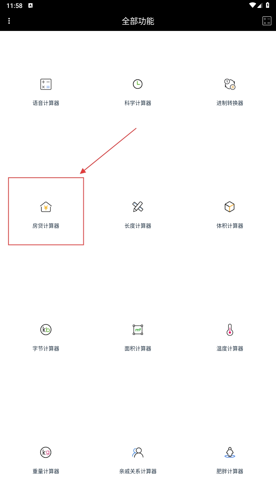 2、进入全部功能页面,选择【房贷计算器-功能选项】,进入房贷计算界面。
