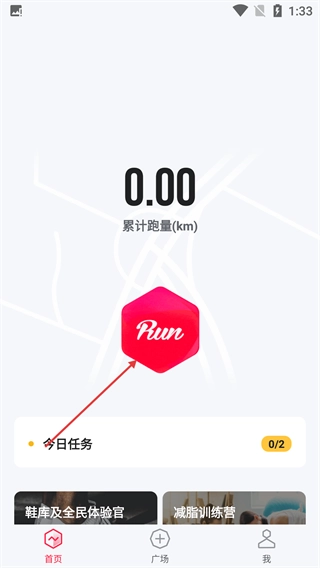 3、登录进入首页后,点击页面中间的【Run】按钮,就会弹出跑步模式选择的窗口,此时你就可以准备开始记录跑步数据了。