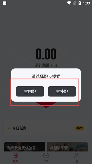 4、当弹出【请选择跑步模式】的弹窗后,你可以依据实际场景选择【室内跑】或者【室外跑】,系统会分别记录不同场景下的跑步数据。