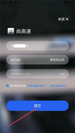 4、在确认注册信息无误且勾选相关协议后,点击【提交】按钮,即可完成账号注册,进而获得尚高速平台的使用权限。