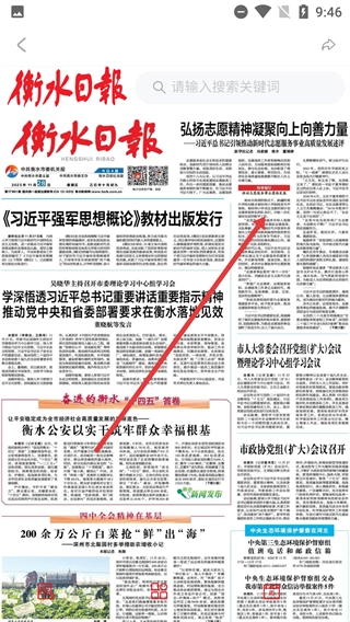 2、打开选项菜单后,点击【衡水日报】这一选项,进入该报纸的内容展示页面,即可查看对应的资讯内容。