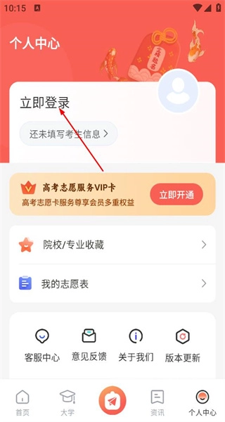 2、进入个人中心页面后,若看到“立即登录”的提示,点击该提示即可进入登录操作页面。