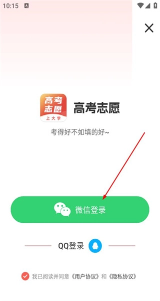 3、进入登录界面,勾选相关协议,选择微信登录的选项,点击对应的按钮来完成登录流程。