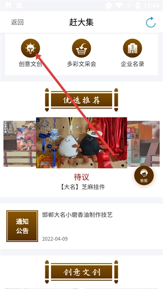 2、进入“赶大集”页面后,点击【创意文创】选项,即可进入地方特色文创产品的分类展示页面。