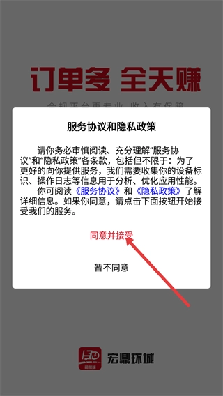 1、请仔细阅读并理解【服务协议】与【隐私政策】的条款内容,确认无误后点击【同意并接受】按钮,才能继续进行软件的后续操作。