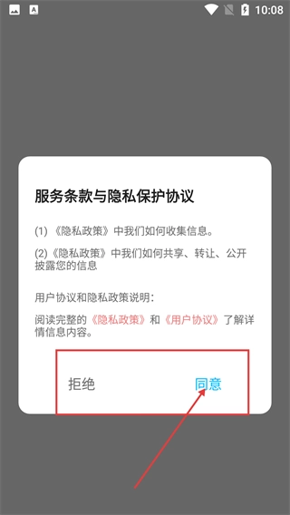 1、打开应用后会出现【服务条款与隐私保护协议】的弹窗,必须点击【同意】按钮确认协议内容,方可正常使用应用的所有功能。