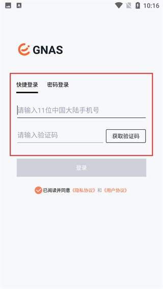 在登录页面选择【快捷登录】方式时,需输入11位中国大陆手机号,点击【获取验证码】并填写收到的验证码,就能完成快捷登录操作。