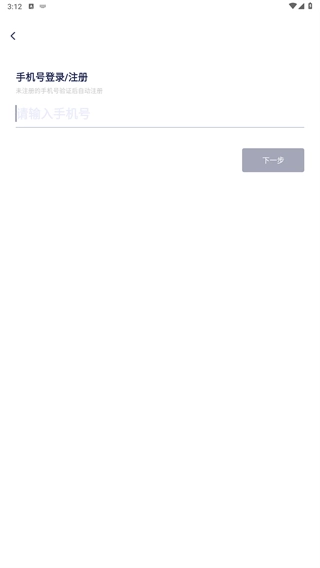 2、在启动页,点击【登录/注册】按钮,即可进入账号操作页面。