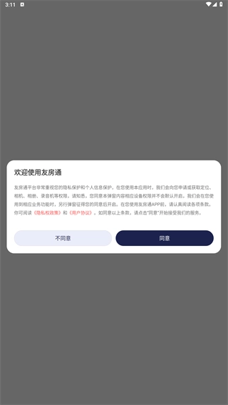 1、仔细阅读《隐私政策》与《用户协议》后,点击【同意】按钮,即可进入应用。