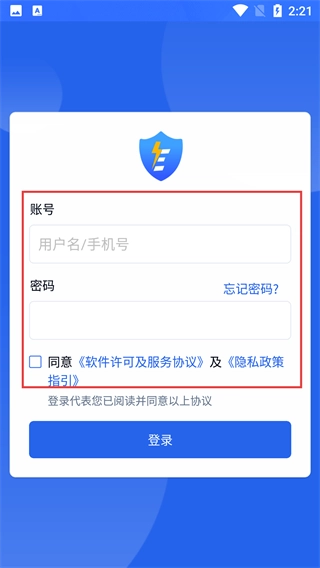 2、进入登录界面后,要在账号栏填写【用户名/号】,在密码栏输入对应的密码,并且勾选同意相关协议,之后点击【登录】。
