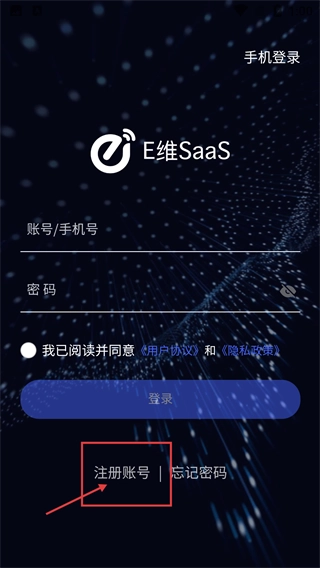 2、进入登录界面后,若尚未注册账号,可点击【注册账号】选项,同时需勾选同意【用户协议】与【隐私政策】,才能启动注册流程。