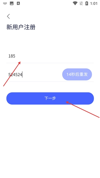 3、在新用户注册页面,先填写【号】,接着点击【获取验证码】按钮,等收到验证码后将其输入到对应的输入框中,为下一步操作做准备。