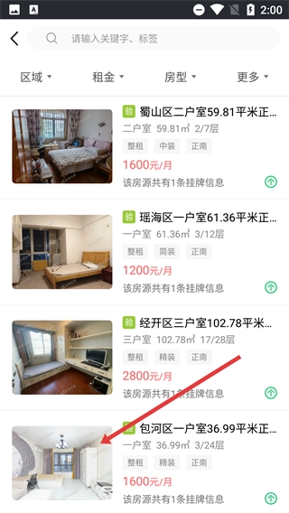 1、合肥住房配备了全面的房源搜索功能,用户能够依据区域、价格、户型等条件筛选出自己满意的房源。