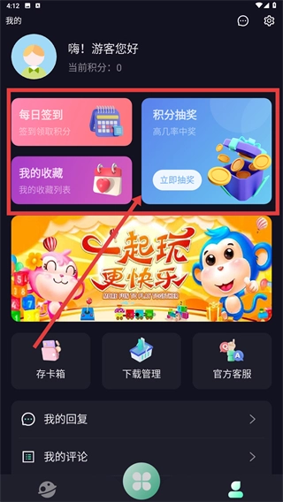 在“我的”页面,用户可以借助【每日签到】【积分抽奖】等功能来获取积分或者福利。