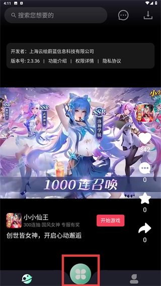 1、点击底部功能按钮,进入应用推荐列表页面。