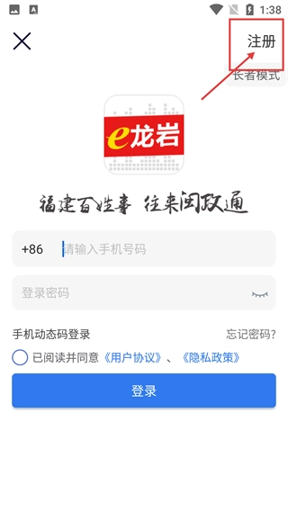 3、进入登录界面后,点击右上角的【注册】按钮,即可进入新用户注册流程,在此流程中需先填写号码等信息,并同意相关协议。