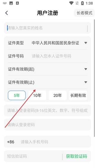 4、用户在注册界面时,需要填写【真实姓名】【身份证号码】等身份信息,设置符合要求的密码,填写号码并获取验证码,以此完成注册流程。