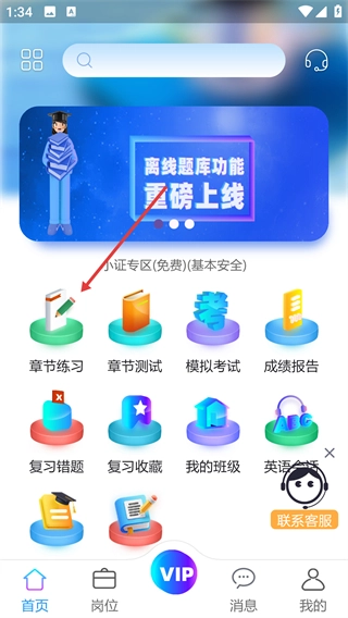 1、在首页点击【章节练习】选项,进入练习章节的选择界面后,能够筛选出对应科目的学习内容。