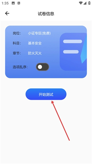 3、在试卷信息页面确认好岗位、科目等相关信息后,点击【开始测试】按钮,即可进入章节题目练习界面。
