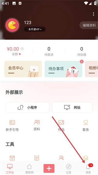 1、在主界面点击底部的【消息】选项,即可进入消息管理页面,在该页面中能够查看各类通知以及消息内容。