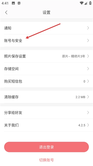 3、进入设置界面后,选择【账号与安全】选项,即可进入账号信息的管理页面。
