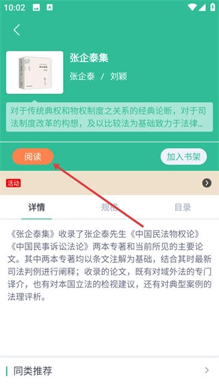 3、在书籍详情页点击【阅读】按钮,即可进入书籍阅读界面查看内容。
