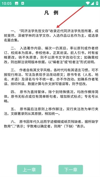 4、在阅读界面,可借助【上一章】【下一章】按钮切换内容,从而浏览书籍的全部内容。