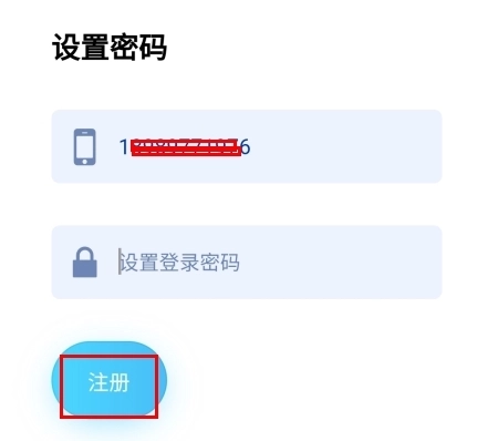 4、在输入验证码和登录密码之后,点击注册按钮即可完成注册。