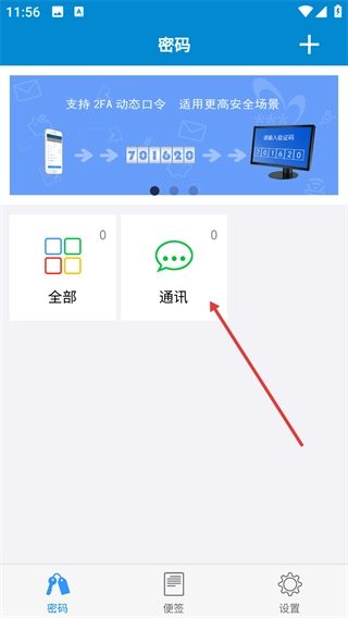 4、创建完成后,界面会呈现新的【通讯】分类模块,该模块可用来对相应类型的密码信息进行归类。
