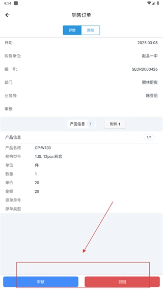 4、进入销售订单详情页面后,仔细核对订单信息,确认无误后,点击【审核】按钮,即可完成订单确认流程。