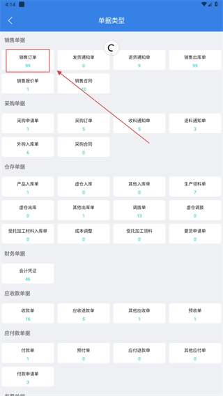 2、进入单据类型页面后,选择【销售订单】这一分类,即可查看与之对应的订单列表。