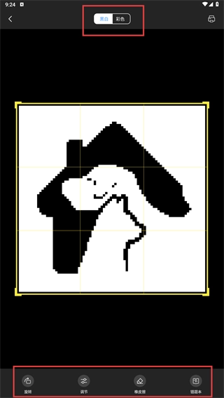 3、进入编辑页面后,可通过【黑白/彩色】选项切换打印模式,还能借助【旋转】【调节】等功能对图片效果进行调整。