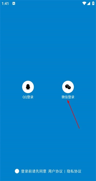 3、进入登录方式选择界面,可见QQ登录和微信登录两个选项,选择相应方式以准备完成软件的登录步骤。