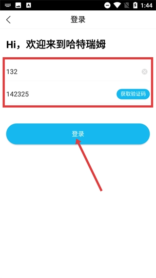 4、在短信验证码登录界面填写号码与验证码后,点击【登录】按钮,即可完成哈特瑞姆的账号登录操作。