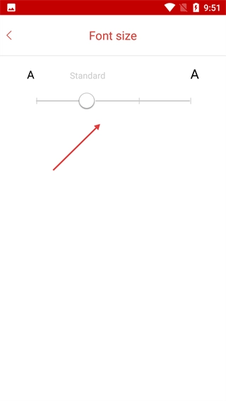 3、进入【Font-size】设置页面后,拖动滑块就能调整字体大小,目前默认是【Standard】模式。