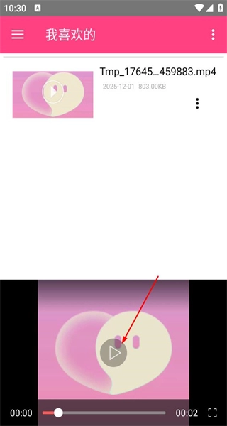 4、进入“我喜欢”页面,找到已添加的视频,点击视频上的播放按钮,即可开始播放该视频内容。