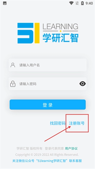 在软件的登录页面,输入框下方设有【注册账号】按钮,点击此按钮即可进入账号注册的前置流程。