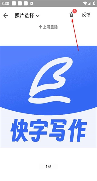 3. 继续停留在照片选择界面,对显示的快字写作相关照片进行上滑操作,以此完成该照片的删除操作。