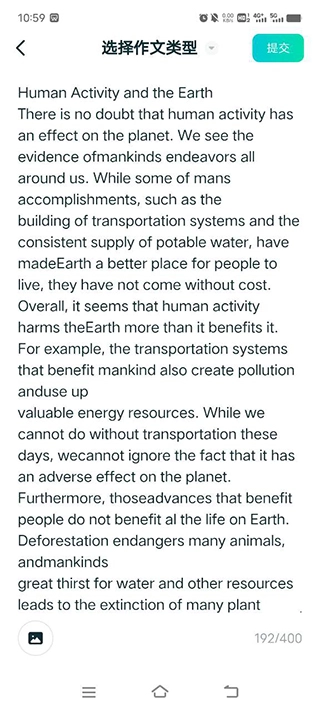 4、完成写作后点击提交,不过系统需要处理时间,请耐心等待约三分钟再查看批改报告