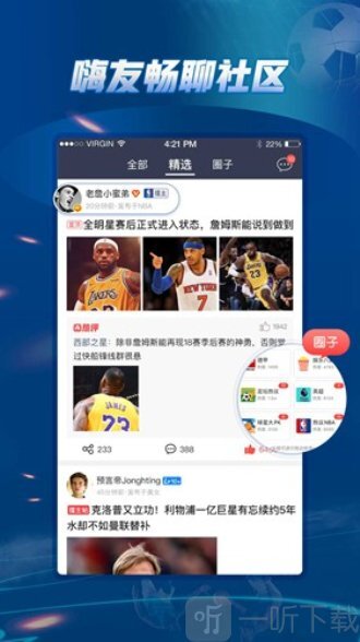 3.用户可以注意体育名人,或查看的热点新闻。