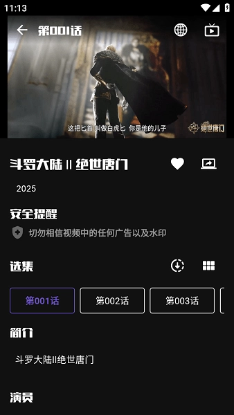 最后,在搜索结果里选一个播放源,点击进入后选择播放就能开始观看了。