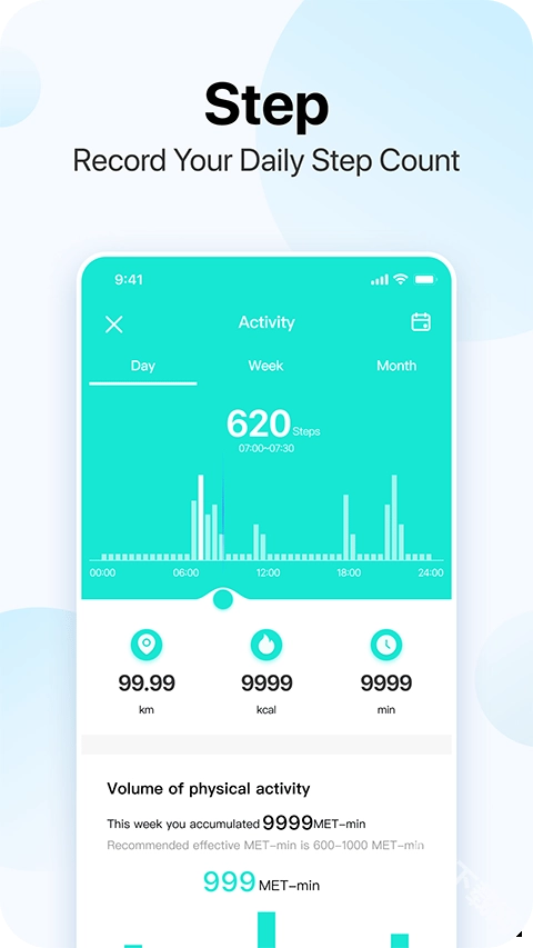 随时监控每日运动量,专用大数据统计图表